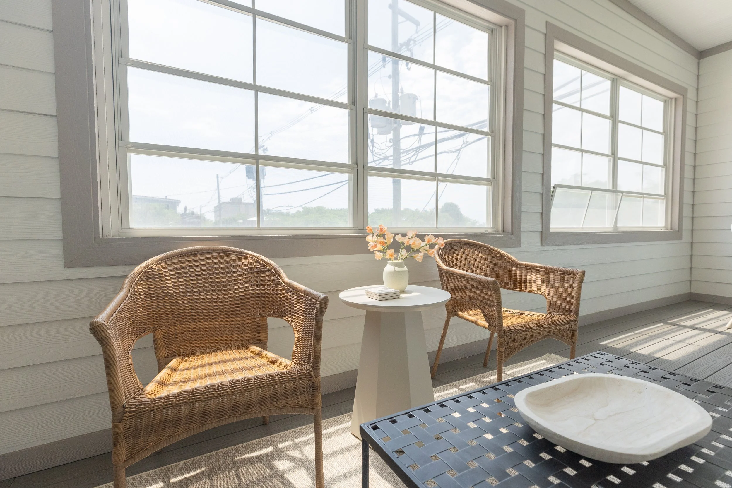 The sunroom, with its expansive windows, allows you to enjoy the stunning lake views in a climate-controlled environment, making it an ideal spot for relaxation year-round.